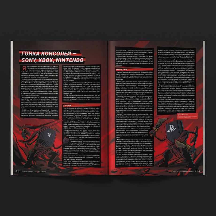 Дебютный номер посвящён масштабной ретроспективе индустрии за почти 30 лет: каждый год сопровождается отдельным любовным письмом к ключевым играм своей эпохи. Также внутри — более 20 оригинальных лонгридов с разбором ключевых событий, потрясших и изменивших индустрию: «Хронология русскоязычного гейминга», «Гонка консолей», «Сексуализация персонажей в видеоиграх» и многое другое.